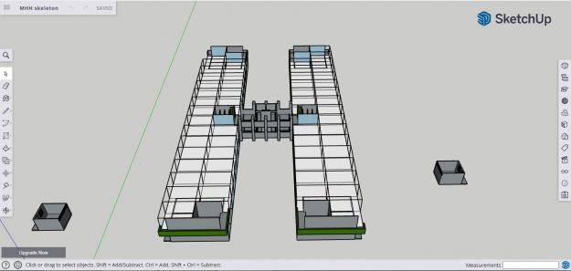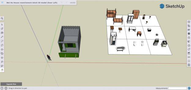 以軟件Sketchup製作,可免費使用。如學校有G Suite或Microsoft Education Account,或是付費帳戶將可使用更多功能,如3D Printing或VR等。